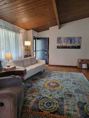 This is a beautiful rug, the colors are bright and vivid. It's soft and plush. The change it has made to my den is remarkable, a complete new look. I would recommend this rug!