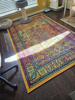 Love this rug! It's so bright and lifts my mood whenever I enter my studio! Obsessed with the yellow. The rug fiber gets pulled out pretty easily (some came off as i got some tape stuck to the top), so just don't pull it out! Hoping it lasts!