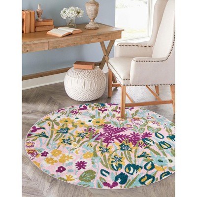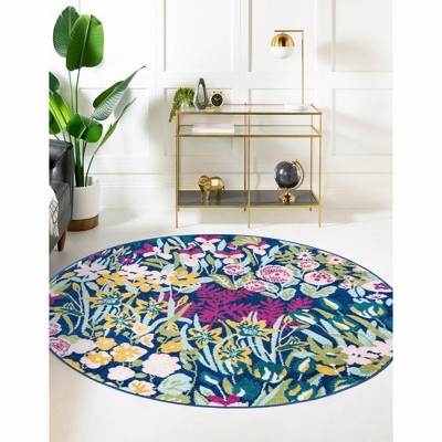 A: The rug's floral designs can enhance tropical, European countryside, or modern vintage styles in various rooms.