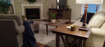 Purchased this for our family room along with an 8' runner. They both look great. It appeared a bit "more white than blue" for the first few weeks, but after normal traffic and vacuuming, the color has begun to look more like the picture. Rug is great. Exactly as expected. Arrived well packaged in just a few days. Great value for the money. Have had contunied good luck on rugs.com.