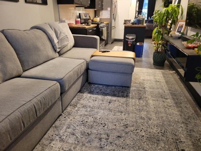 I like this rug and bought it for it’s dark gray tones. It came quickly and packaged well. The only negative I would say is that when the rug is in natural light, it the dark gray appears sort of silver. It’s just one of those that changes color some when exposed to natural light. The rug is thin, so go ahead and get the 1/4” rug pad to go underneath. If you don’t, you will be sorry.