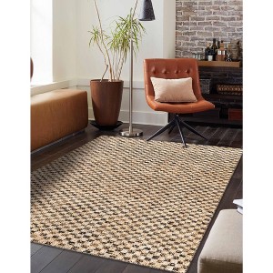 A: The rug's pile is made from 60% jute and 40% wool, offering a natural texture.