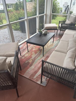 This rug is even better in person. Light weight, beautiful in color, great quality. I would highly recommend a 1/4" felt rug pad under. Absolutely made our living room complete!