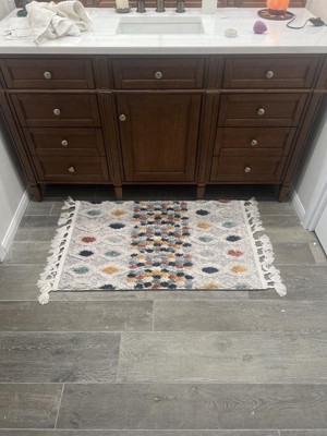 This rug is a beautiful addition to my bathroom. The colors are quite vibrant and the rug is extremely well made!