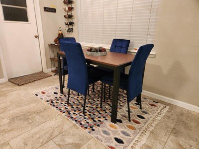 We got a little dinette set for our new house. I was looking for a rug with some personality, then I found this Cherokee rug. It fits so well with the table. The colors are beautiful, and I'm already getting compliments. So happy about this purchase!