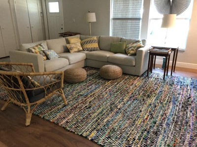 I love the way it looks. Very colorful with bits of metallic gold. It's not as sturdy as I expected and I will have to carefully use a handheld vacuum to clean it. The woven cords are made up of short pieces of fabric so there are tufts that stick up here and there. They can be tucked back into the rug if I take the time to do so... I added the thicker rug pad and I'm glad I did because I do yoga in this room and the rug would be too thin without a pad.