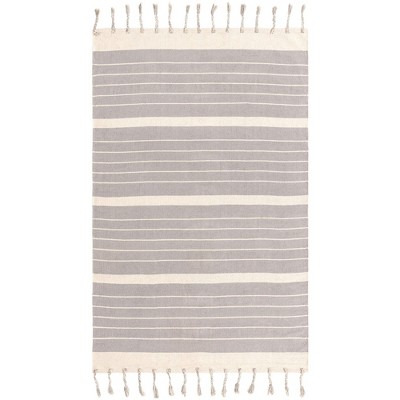 [This review was collected as part of a promotion.] A very nice and durable cotton rug. I like that the color is not just a flat gray but several tones of gray with white. It gave it a more contemporary feel. It is 100% cotton and certainly durable. It is soft – probably not for a formal type of space. I have placed the rug in my California room and it just looks perfect for the space. It really helped to anchor the space and made it feel like it was a seamless extension of my living room