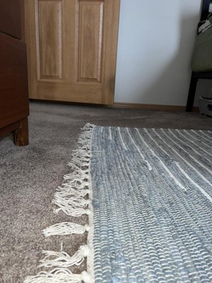[This review was collected as part of a promotion.] A very nice and durable cotton rug. I like that the color is not just a flat gray but several tones of gray with white. It gave it a more contemporary feel. It is 100% cotton and certainly durable. It is soft – probably not for a formal type of space. I have placed the rug in my California room and it just looks perfect for the space. It really helped to anchor the space and made it feel like it was a seamless extension of my living room