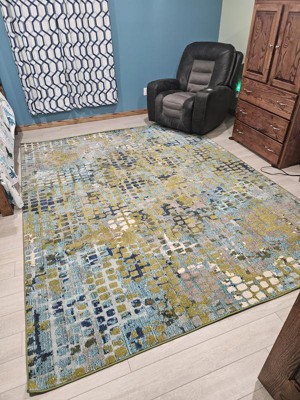 A: The rug's pile material is 100% polypropylene, known for its durability.