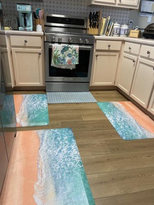 We love them! Wish they made on to fit in front of our 18”x30” stove. Looks great with my peach kitchen cabinets. ( the countertop is peach with silver flecks in it to look like sand.) Love my beach decorated home in Florida!🌴