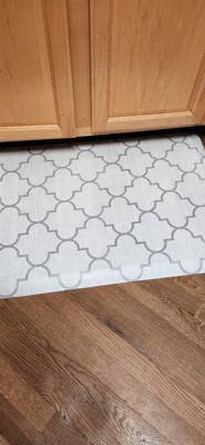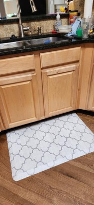 [This review was collected as part of a promotion.] This comfort mat is so nice and, dare I say it, comfy! I put it in front of my kitchen sink. It's bigger than the sink so I can move back and forth easily without falling off the mat edge. It's easy to wipe clean and dry when something spills on it. I am absolutely in love with the design and it goes so well with my home.