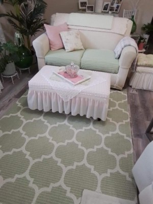 A: The pile material of the rug is 100% cotton, providing a soft texture.