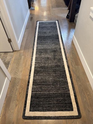 Really nice rug with a tight but luxurious pile. Mottled black translates softer than a solid dark black.