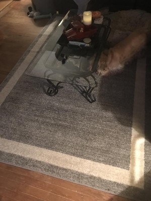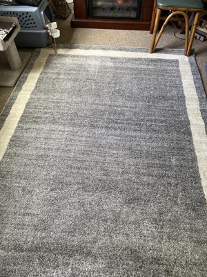 I bought this rug 2-3 weeks ago and, I just love it !! The rug is grey but, the wide white boarder just makes it pop !!