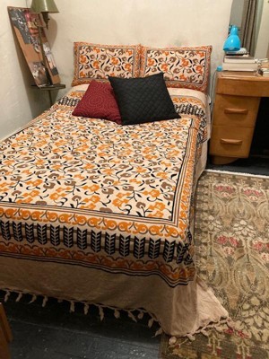 Looks great between two twin beds (3' X 5') in small bedroom. Nice pile. Colors bright. Pattern beautiful. Really like this rug!