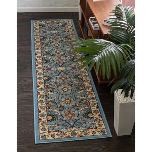 A: The rug is made from 100% polypropylene, ensuring durability and resistance to stains.