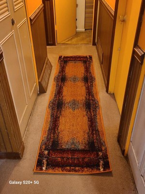 I love the pattern and colors. I purcharsed the round rug as well. The orange in the runner is not as vibrant as it is in the round rug. However, it is still a pretty rug.