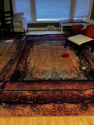 We have had this rug in our living room for about two weeks now. I always love it when I sit down and gaze at the rug. It is bright with several color tones. It adds just the colors we needed.
