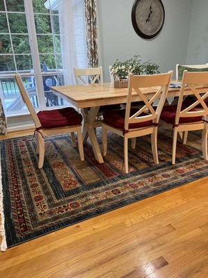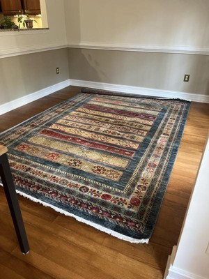 What a find at an affordable price. It’s perfect for our family room. It’s a work of art- the design extraordinary and the bold colors just pop. The texture is soft underfoot. It’s given the room a warm classic look yet relaxed. I gave it a quick spray of Scotch Guard and it’s ready to go. I expect to have it for many years due to the expert construction. I am very satisfied and recommend it, highly.