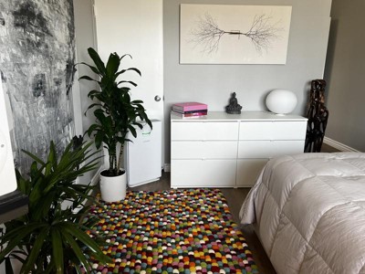 For a luxurious feel and just a bit of whimsy, look no further than our Felt Ball rug collection. Made with 100% natural wool, these rugs provide a soft, squishy surface that you'll love to step as soon as you get out of bed each morning, or beg you to kick your shoes off when you're lounging around in the living room. Available in both a clean, neutral ivory color that exudes a sense of peace and relaxation and a playful multicolor version that instantly brightens any room it's in, the Felt Rug Collection is an attractive showpiece for any style. Sitting at 1 1/2 inches high, the pileless wool construction makes these rugs easy to clean despite their plush feel. Perfect for medium-traffic areas where comfort is a priority like the living room or bedroom.