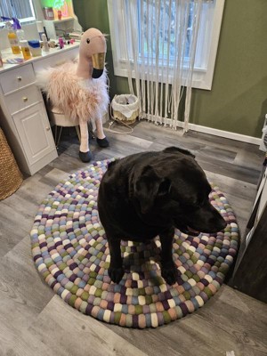 This rug is absolutely stunning, and so well made. It is just a shame that the felt balls are a tad bit too large, making the overall rug very "tall".