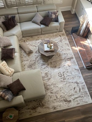 Beautiful design with neutral cream and brown colors. So soft on feet. Good pile height. I’m extremely happy with this purchase.