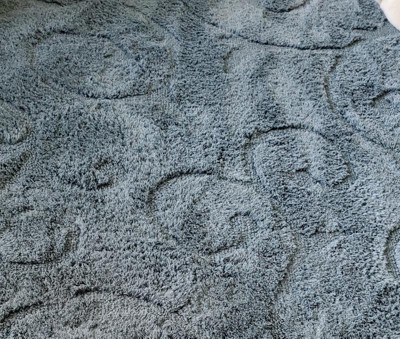 We love this rug ! It is a short pile blue grey rug it had a nice backing on it that won't flake off like some rugs.