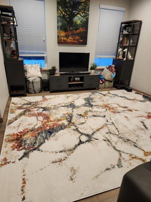 A: The rug is made from 100% polypropylene, providing durability and resistance to stains.