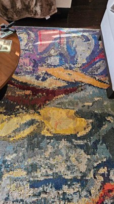 A: The rug is made from 100% polypropylene, ensuring durability and resistance to stains.