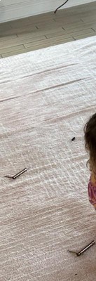 A: The rug's pile material is 100% polypropylene, known for its durability and stain resistance.