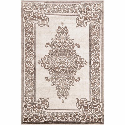 Get swept away by the mystique of the Hermitage Collection. Pulling together the romance of regal country estates, instantly bring refined opulence to any space in your home. With all of the romanticism of a royal court, this collection brings together both classic motifs like traditional stylized floral patterns along with modern abstract interpretations to suit any home décor. The neutral palette of cream, snow white, beige and chocolate brown come together in a variety of elegant combinations that are sure to complement your décor. Whether you opt for a traditional look, more modern geometric or subtle patterns, each rug in the collection is gorgeously low-maintenance with a 55% polypropylene and 45% polyester mix and durable machine woven power loomed construction. You’ll appreciate its shed-free material whether you choose a high/low pattern or a more traditional loom. This collection of medium pile height rugs is durable enough for your most high traffic areas and are both kid-friendly and stain-resistant.