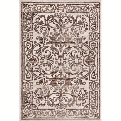 Get swept away by the mystique of the Hermitage Collection. Pulling together the romance of regal country estates, instantly bring refined opulence to any space in your home. With all of the romanticism of a royal court, this collection brings together both classic motifs like traditional stylized floral patterns along with modern abstract interpretations to suit any home décor. The neutral palette of cream, snow white, beige and chocolate brown come together in a variety of elegant combinations that are sure to complement your décor. Whether you opt for a traditional look, more modern geometric or subtle patterns, each rug in the collection is gorgeously low-maintenance with a 55% polypropylene and 45% polyester mix and durable machine woven power loomed construction. You’ll appreciate its shed-free material whether you choose a high/low pattern or a more traditional loom. This collection of medium pile height rugs is durable enough for your most high traffic areas and are both kid-friendly and stain-resistant.