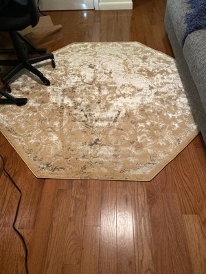Unexpected shiny nape of carpet. Looks almost white from one angle, and the colors are visible from the opposite angle. Rug was perfect size and very soft. The shinyness might be a bother though.