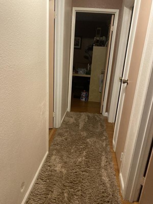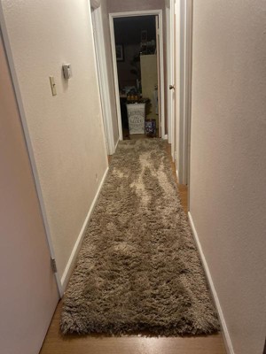 I got this runner for my hallway to buffer the noise of the wooden flooring from the basement. The fibers were not as shiny as they looked in the picture but they are so smooth to the touch and so plush to step on that I am happy I got it.