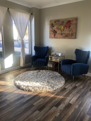 The 5 x 5 Infinity Shag Round Rug is gorgeous! It goes perfectly with my new wood floors and adds the pop of color I was looking for. The ordering process was easy, my rug arrived swiftly and the communication throughout the entire process was on point. I will definitely be ordering more rugs!