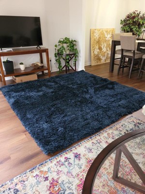 I was looking for a solid navy blue rug that came in a square shape when I found this one. It fit my needs perfectly. It's exactly as pictured and great quality. Very soft.