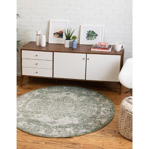 A: The rug fits well with rustic styles, traditional floral patterns, and contemporary decor.