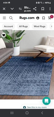 The picture does not do it justice. It is absolutely gorgeous. The blue is a rich navy, much better than the stock photo and I am beyond pleased with it (and ordered the purple in a 9x12!) I highly recommend it. Pictures don't turn out well so I'm not posting but trust me if you want a dark blue, navy rug, this is it.