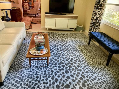 Bought 2 intending on nearby rooms, but found the dark areas were not NAVY but more dark gray. I do like them as they are different and the light blue background is pretty on my floors.