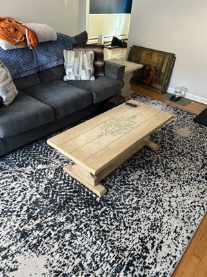 This rug looks the way it's pictured from a distance, but when you're actually standing on it, it appears very pixelated. My fault for not zooming in on the photos to know this before deciding. Otherwise it's good quality. Soft and thin yet sturdy.