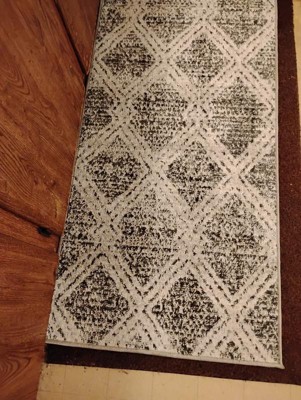 Soft and great pattern. Love it with the cushioned rug pad especially. A little more gray that blue but still love it.