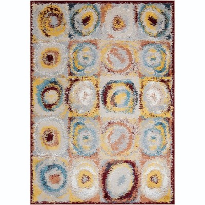 Used this rug for our bedroom. It has simple pattern with light color and some pinkish shade. It adds coziness without overwhelming the room. Like it very much.