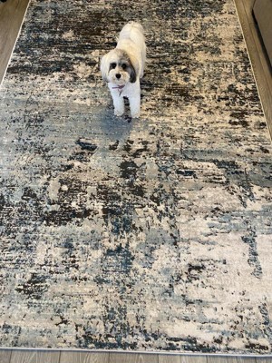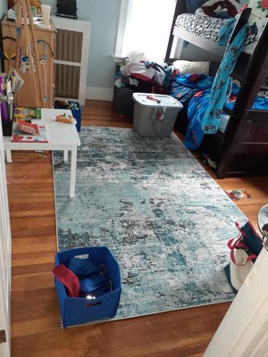 I bought this rug a month ago to brighten up my boring living. I love all the different shades of blue in the rug. The texture of the rug is soft and inviting.