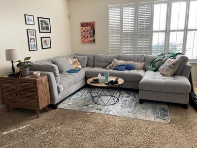 This was the perfect size and color to accent our living area as we have pops of blue and gray accents throughout, but did not want anything too matchy matchy. Rolled the rug inside out overnight and there were no creases upon unrolling. Carpet smell goes away after a short while. The price point was the best value we could find online.