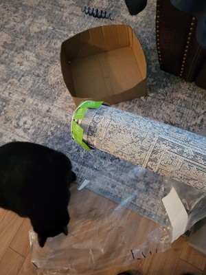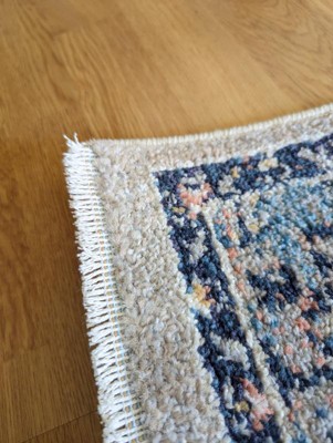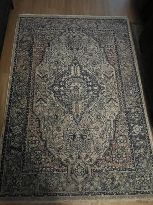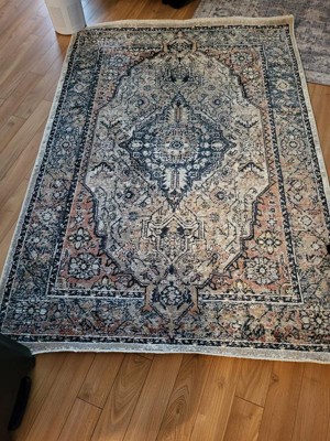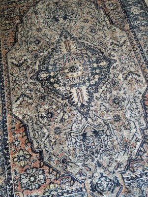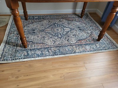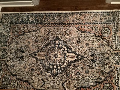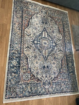 [This review was collected as part of a promotion.] This Lola area rug in the blue/gray colorway has a vintage turkish rug look but is easy to take care of. It was easy to unroll and pretty fluffy right away. The corner and edges were slightly curled up but relaxed and flattened with time. There weren't any factory smells or off gassing, which I appreciated. It is made completely of polypropylene for the pile so it doesn’t have to be treated too delicately. As suggested, a rug pad definitely made it feel more cushiony and less prone to slipping. The tones in the rug are more of a cooler gray tone but the red blush tones help offset it from being too cool. I did find that the colors look different depending on the light and furniture in each room. In one room the colors looked more pastel leaning but looked very moody and dark in another room. Two sides of the rug are finished with wrap sides and two are unfinished. While I understand the unfinished sides are to mimic those of vintage turkish rugs, I just don’t think it looks that great when the materials used in this rug. I would have preferred all four sides to have been finished. The rug does feel relatively soft and not too scratchy but it definitely feels like it is made of polypropylene or plastic as opposed to a natural fiber. Overall, I think this is a good option for getting the vintage look but it does feel like it is made of polypropylene and an economical option.