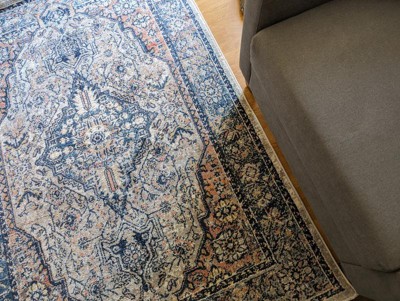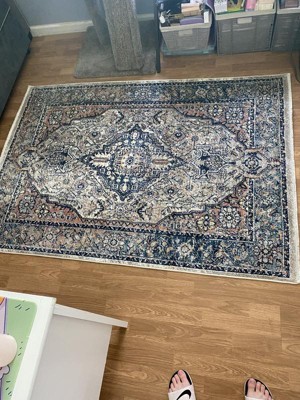 [This review was collected as part of a promotion.] This beautiful rug is super unique and super gorgeous. I love the overall traditional pattern of the blues and grays woven into this rug. I really love how it complements my office and really makes the rug stand out with all its beautiful unique patterns. The rug is very soft and is very easy to vacuum. It gives my home a very beautiful and unique look.