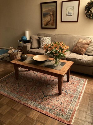 Global style comes home. Combining the chic geometric designs of handmade traditional rugs with subdued colors and distressed textures, the Lola collection is the perfect addition to your shabby chic, bohemian, or vintage style home. Earthy palettes including rusty reds and warm beiges contrast with deep indigo blues and saffron yellows for a look that is both striking and subdued. The soft polypropylene pile is easy to clean and perfect for medium to high traffic spaces like living rooms and dining rooms.