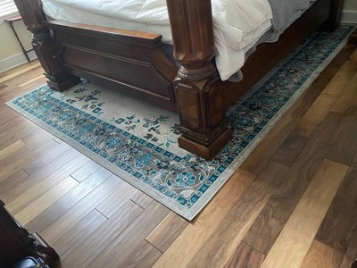 I put this in my bedroom last week after getting hard wood floors. It looks great with grey and aqua/teal colors.