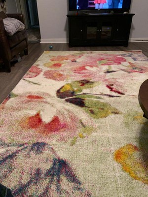 I bought this rug a couple of weeks ago. It is exactly what I wanted. The flora pattern is soft and goes beautifully with the new creamy yellow paint in our breakfast nook.