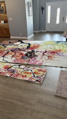 A: The rug is made from 100% polypropylene, providing resilience and comfort.